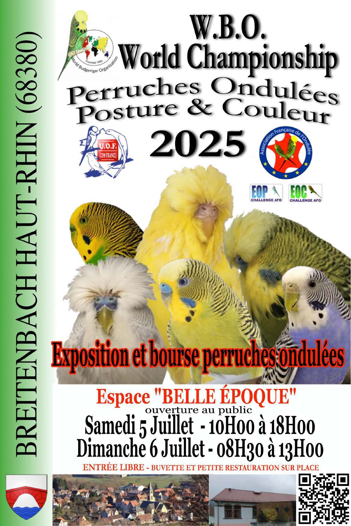 C’est une occasion unique, pour la première fois ce 11ème Championnat du Monde WBO aura lieu en France, tout éleveur de perruches ondulées se doit d’y participer !