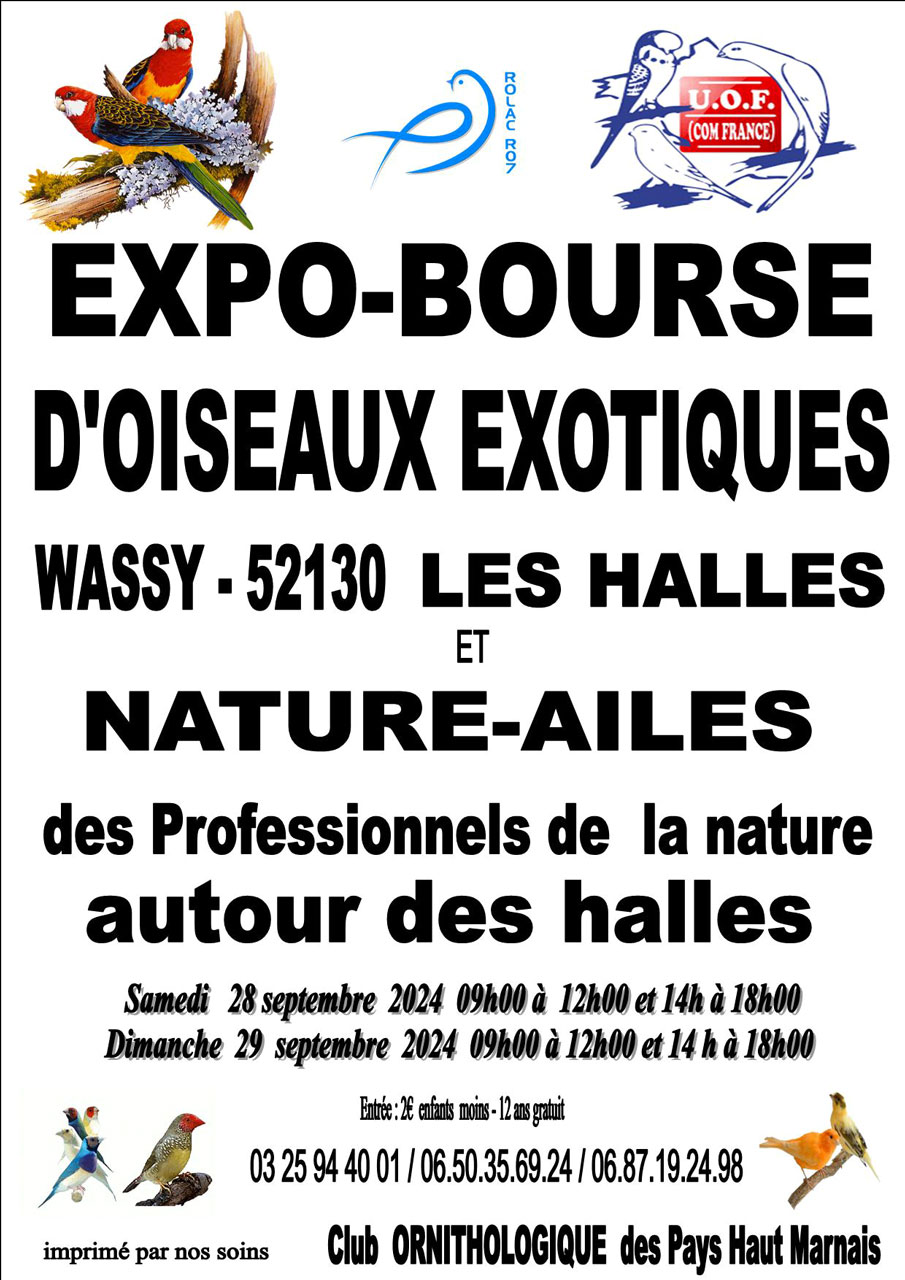 Le Cercle Ornithologique des Pays Haut Marnais organise un concours – exposition – bourse aux oiseaux exotiques à Wassy les 28 et 29 septembre 2024.