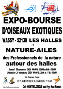Le Cercle Ornithologique des Pays Haut Marnais organise un concours – exposition – bourse aux oiseaux exotiques à Wassy les 28 et 29 septembre 2024.
